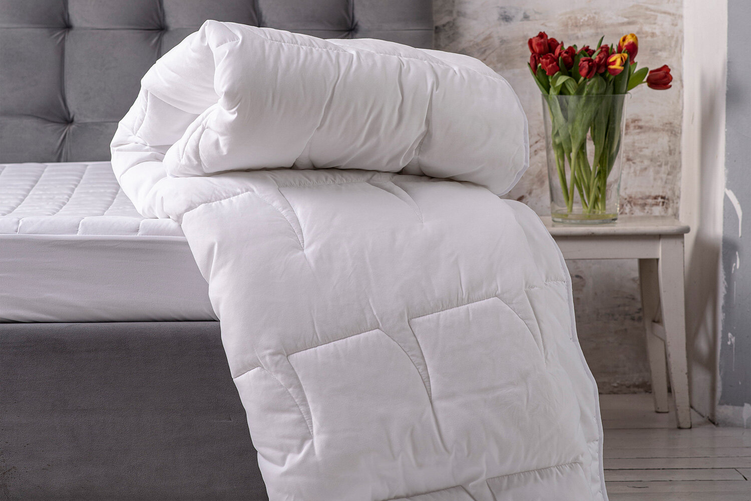 Одеяло Отельное лебяжий пух Кассетного типа 170х205 см, двуспальное 300гр/м2 / Horeca одеяло для отелей и гостиниц