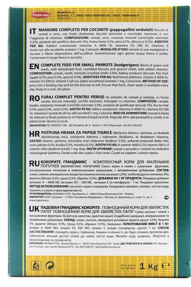 Купить PADOVAN 1кг Корм основной для волнистых попугаев GRANDMIX cocorite