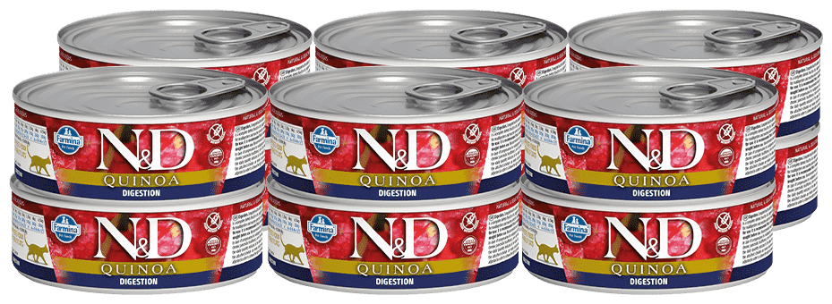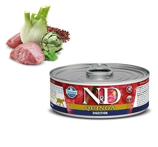 Корм для кошек FARMINA N&D Quinoa с киноа, для поддержки пищеварения банка 80г (упаковка - 12 шт)