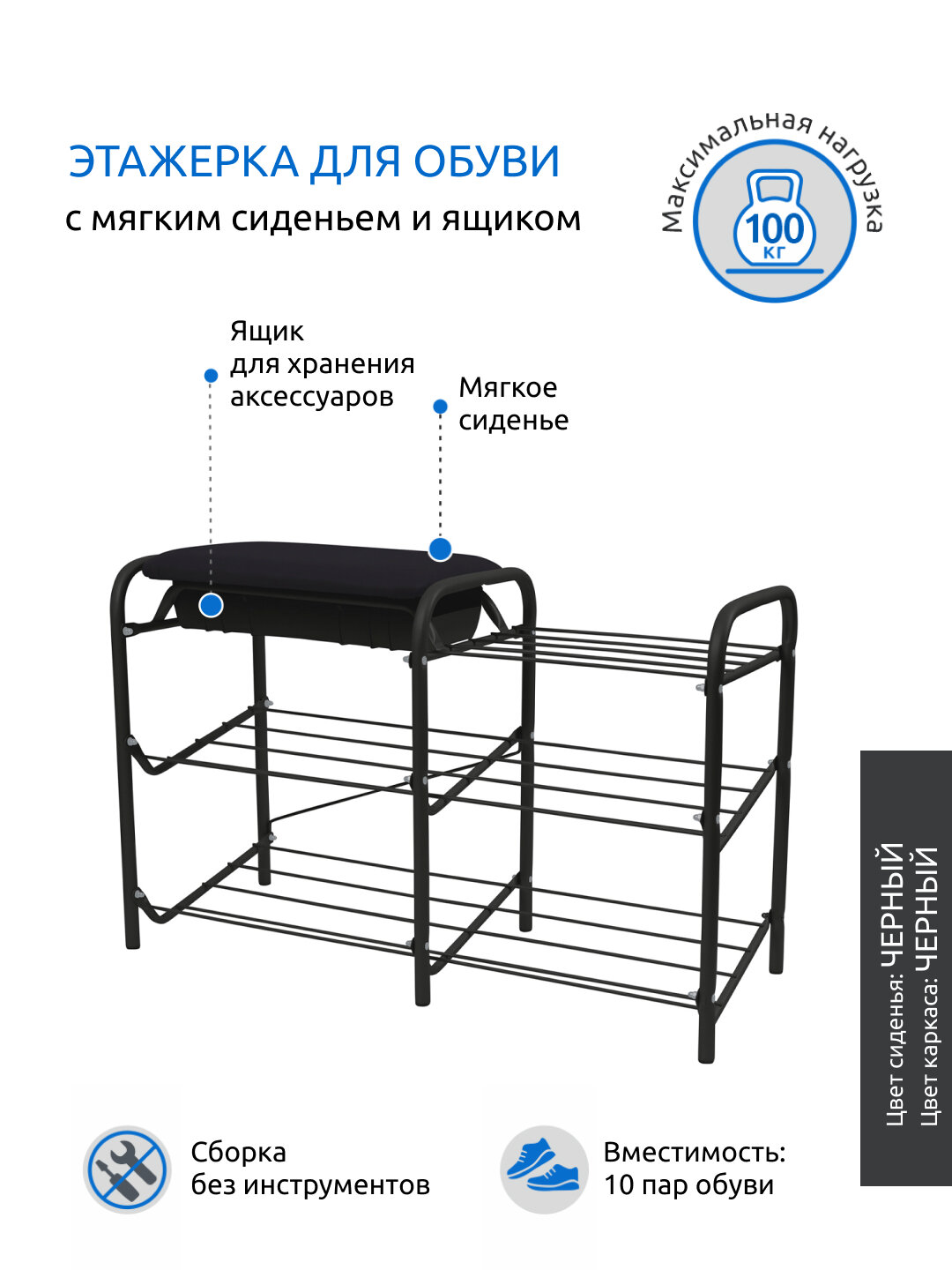 Этажерка для обуви NIKA НИКА ЭТП1 с ящиком, черная