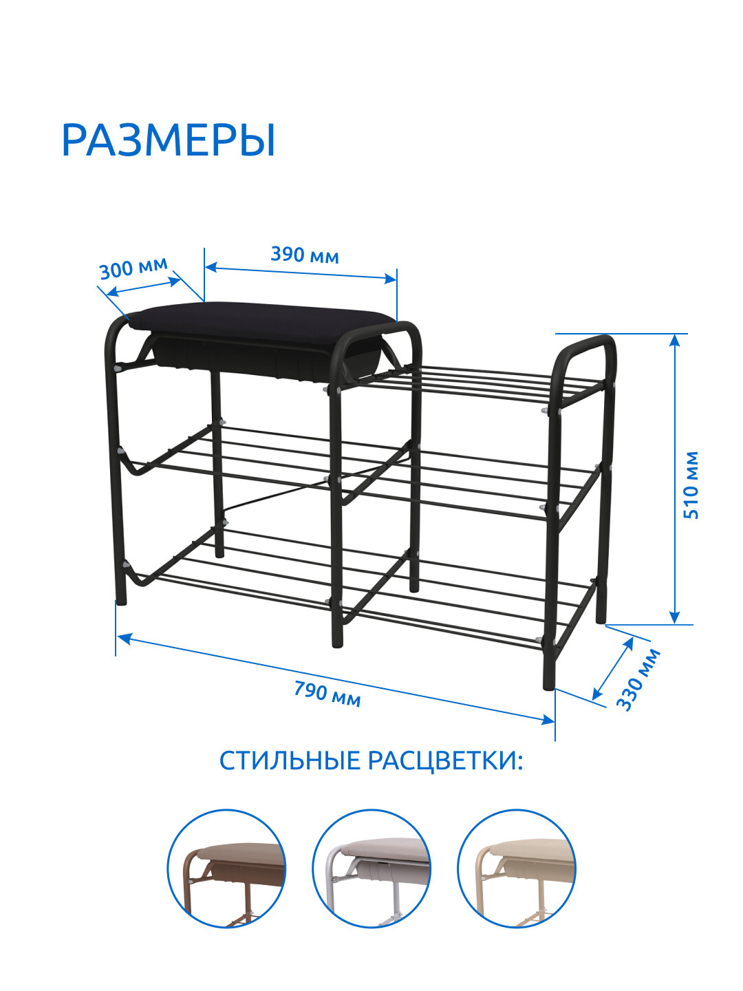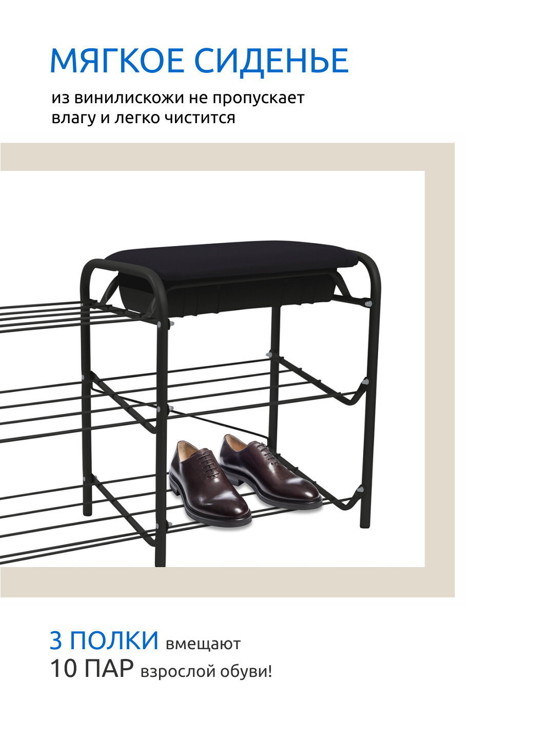 | Отзыв: | Хороший размер, удобно размещать обувь и обуваться-разуваться сидя. |