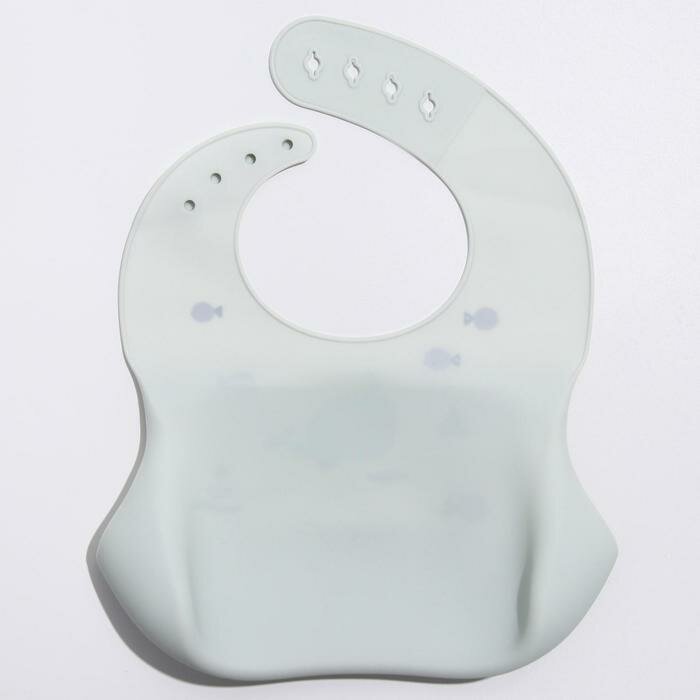 Нагрудник силиконовый, на кнопках, с карманом «Кит», цвет серый/белый