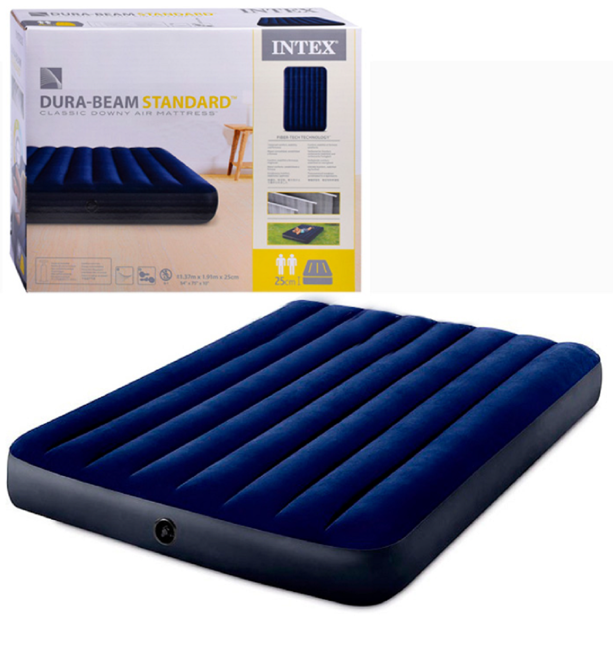 INTEX Кровать надувная Classic downy (Fiber tech) Фул, 1,37м x 1,91м x 25см, 64758