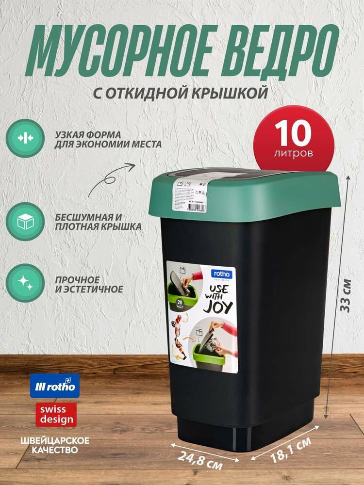 Мусорное ведро с крышкой для кухни и дома Rotho Swing bin 10 литров