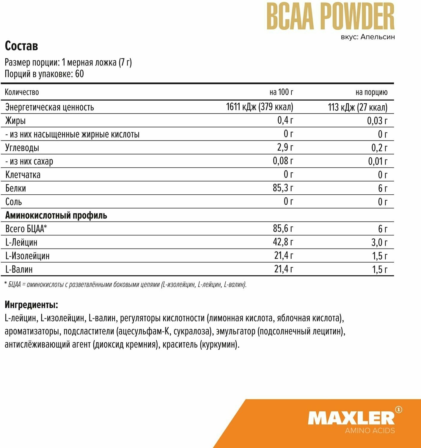 Maxler BCAA Powder EU 420 гр (Maxler) Апельсин