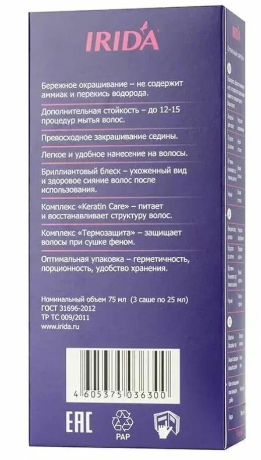 IRIDA, Оттеночный шампунь, коньяк, 75 мл, 6 шт