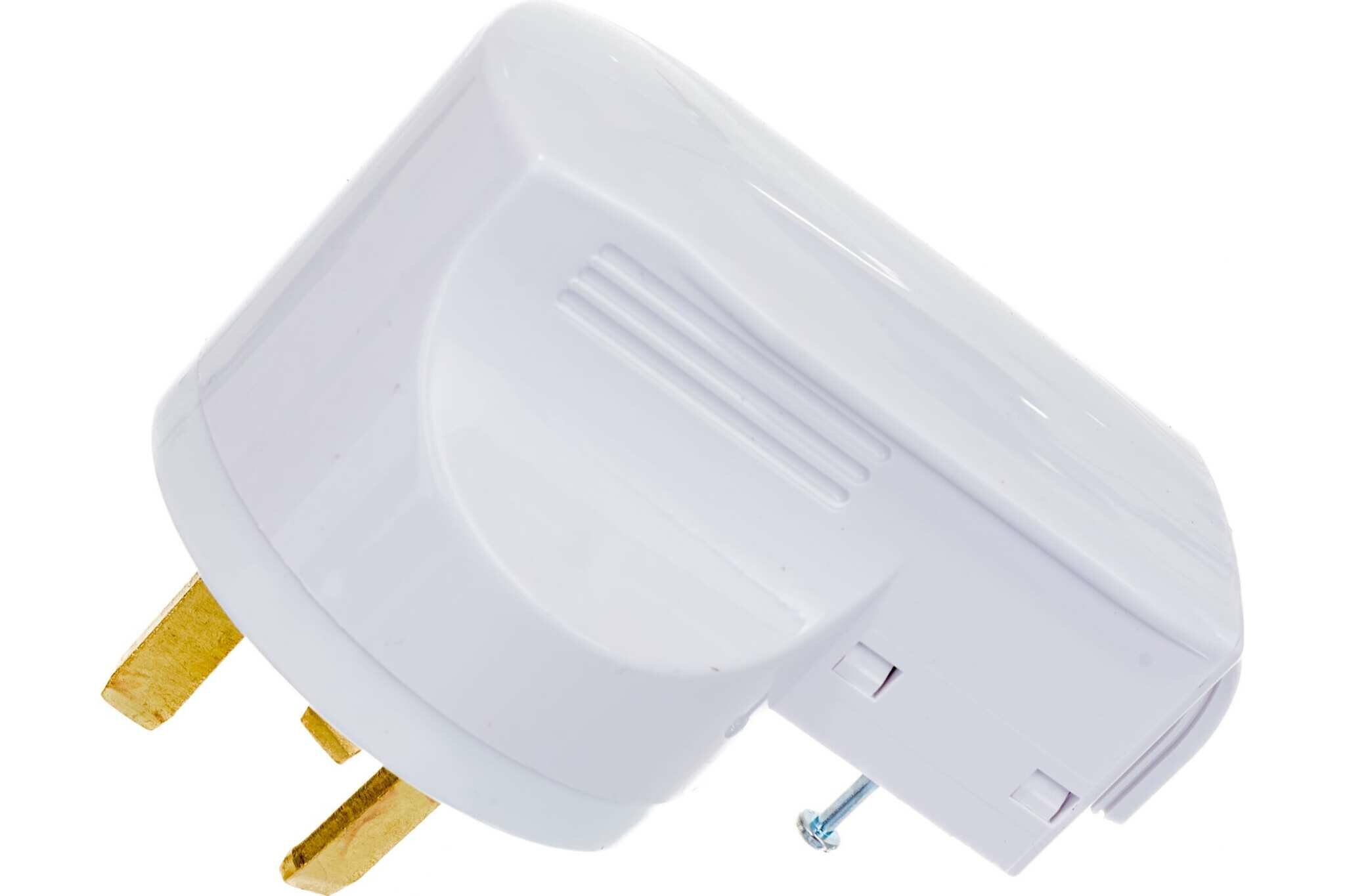 Тройник для розетки электрический с заземлением 16А, белый