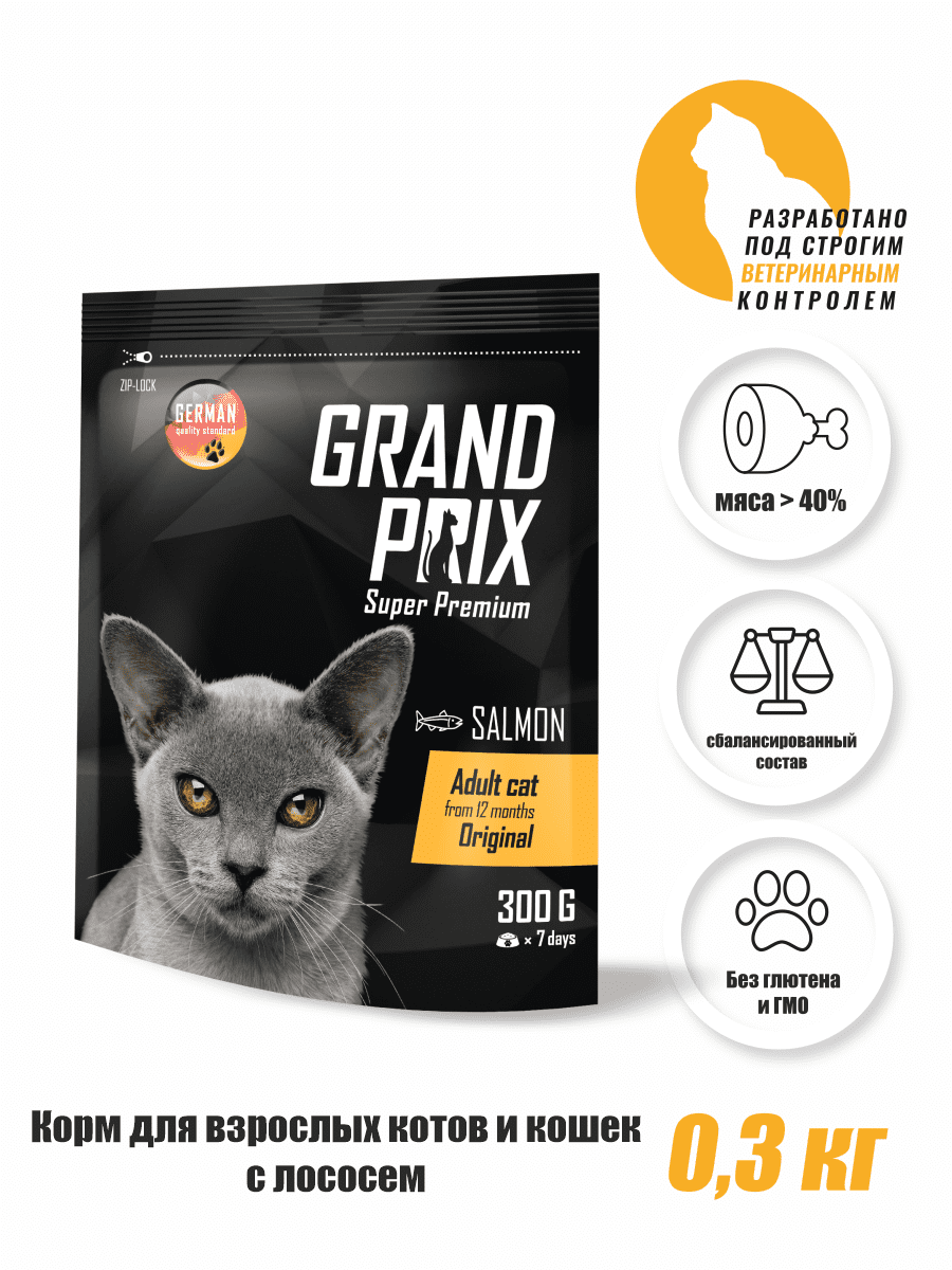 GRAND PRIX ADULT CAT ORIGINAL для взрослых кошек с лососем (0,3 кг)