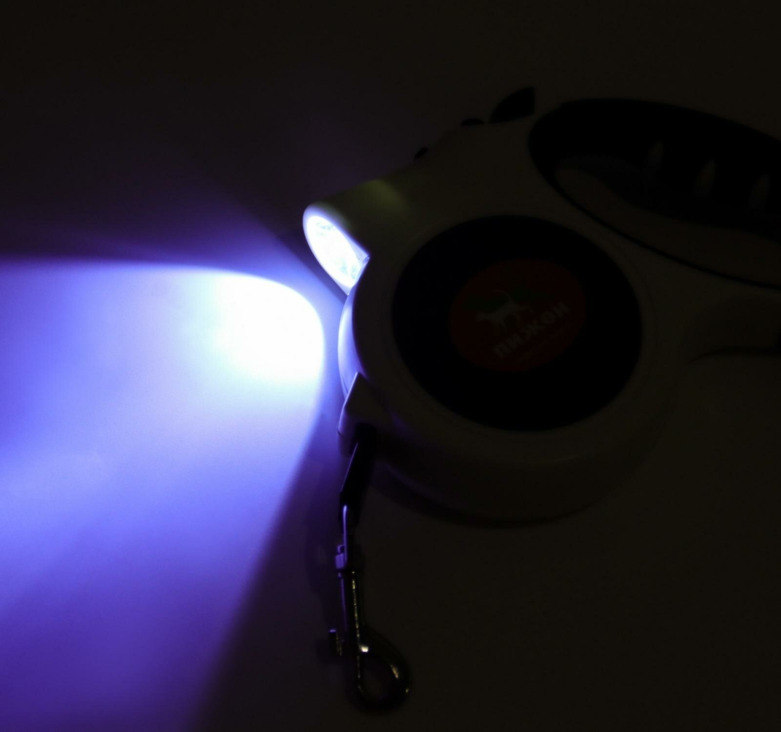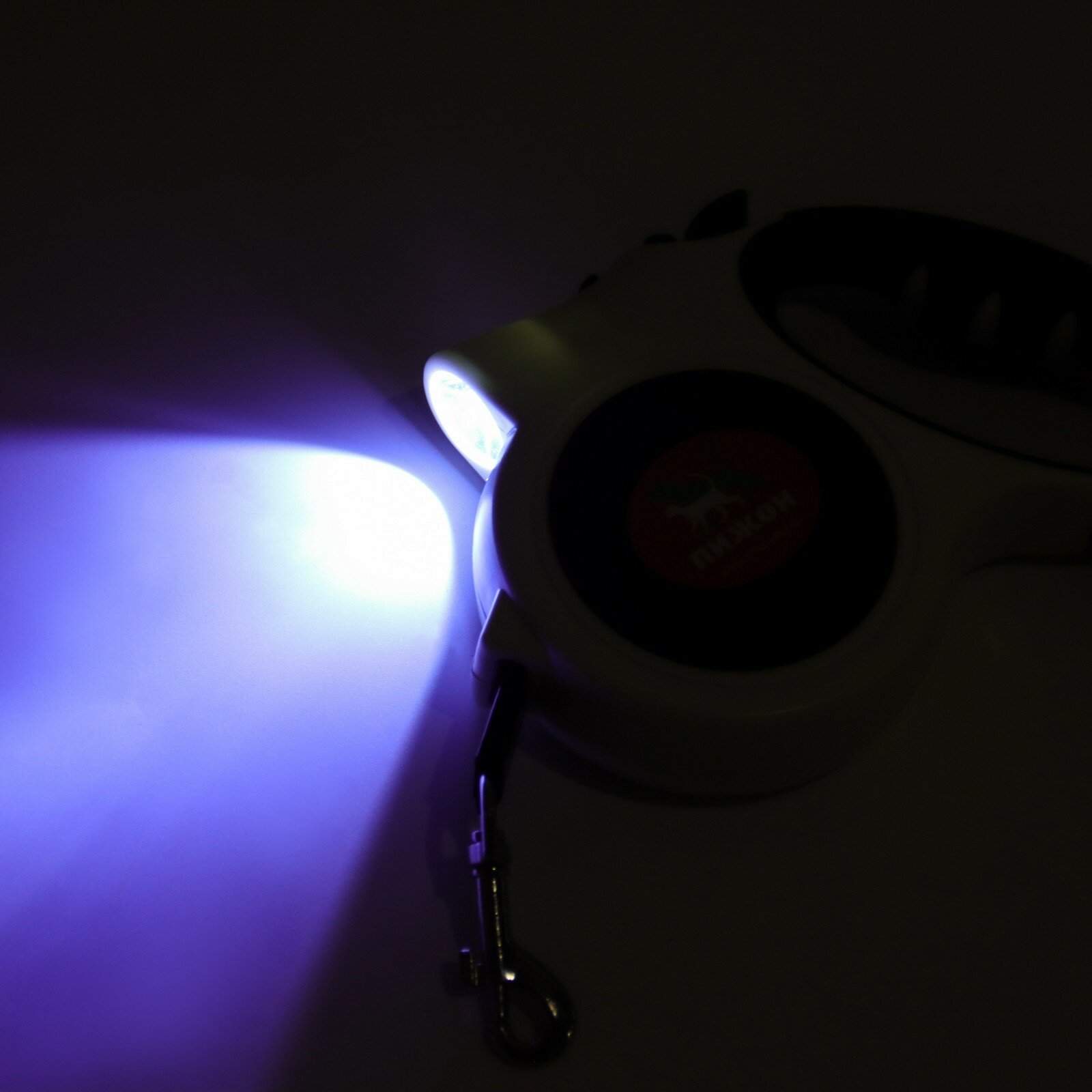 Поводок-рулетка для собак Пижон с фонариком, до 35 кг голубой 5 м