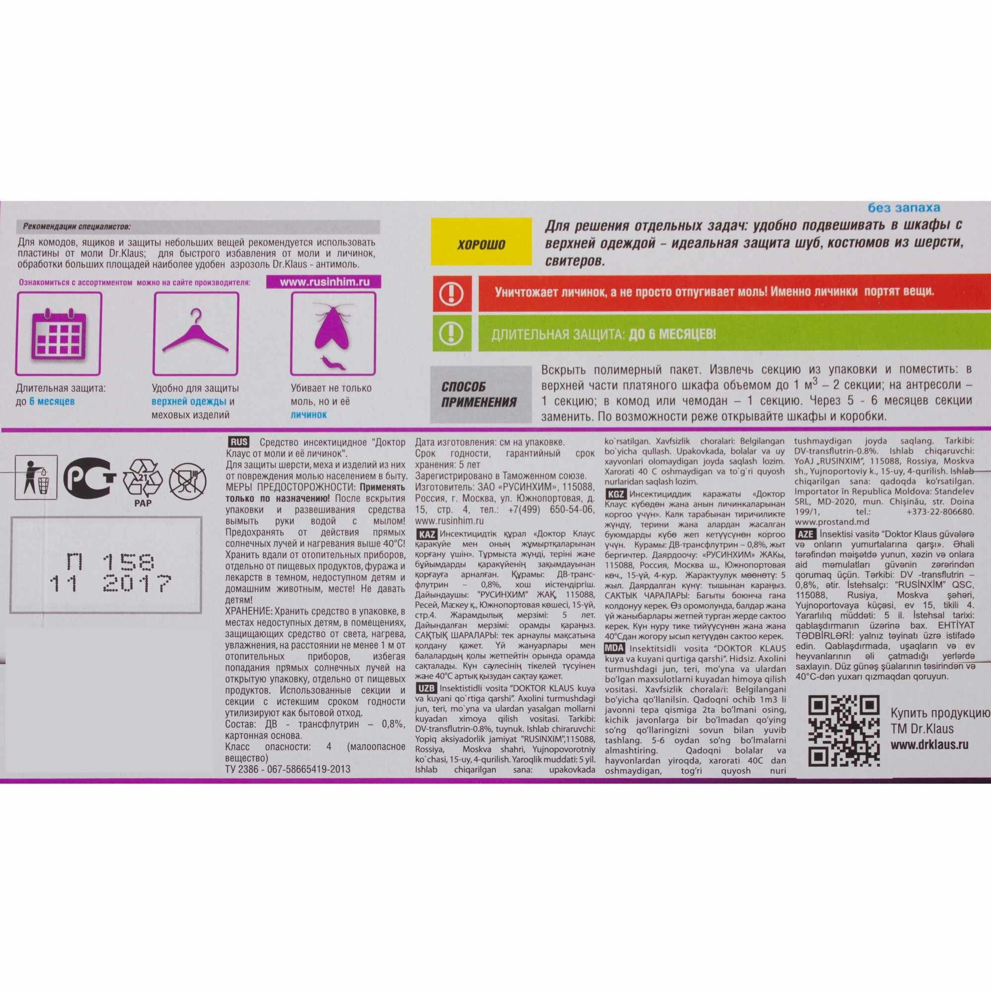 Секция пластиковая "Dr.Klaus" от моли без запаха
