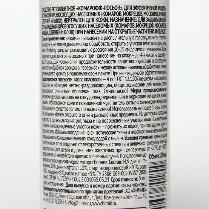 ДЭТА Лосьон-спрей репеллентный от комаров "Комарофф", 100 мл