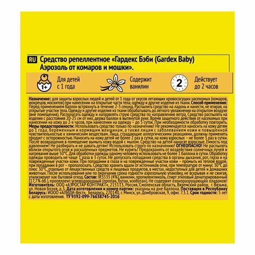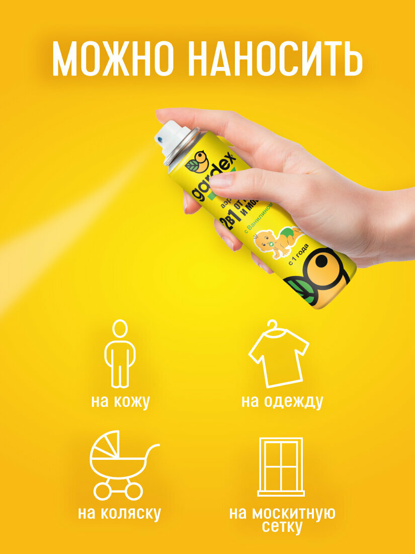 Аэрозоль Gardex Baby 2 в 1 от комаров и мошек для детей от 1 года, 80 мл