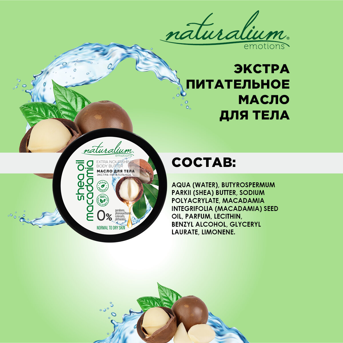 Купить Naturalium Emotions Экстра - питательное масло для интенсивного увлажнения, восстановления тела против шелушения и массажа. Питательное средство для ухода за кожей с маслом Макадамия и Ши/ Веган 200 мл