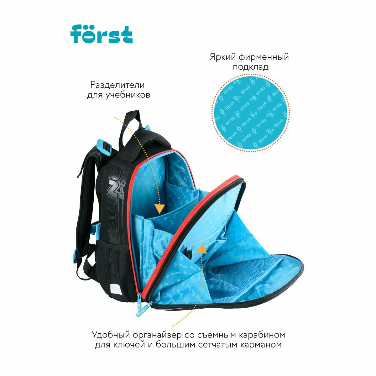СохранитьРанец F rst F-Top "Red car" 36*28*15см, 2 отделения, 2 кармана, анатомическая спинка интересное: