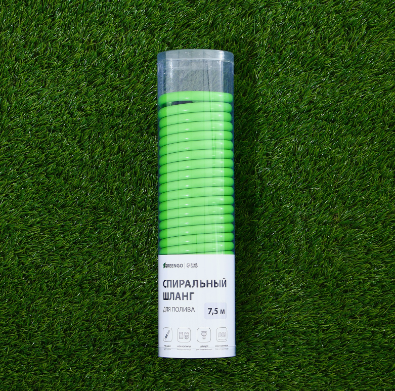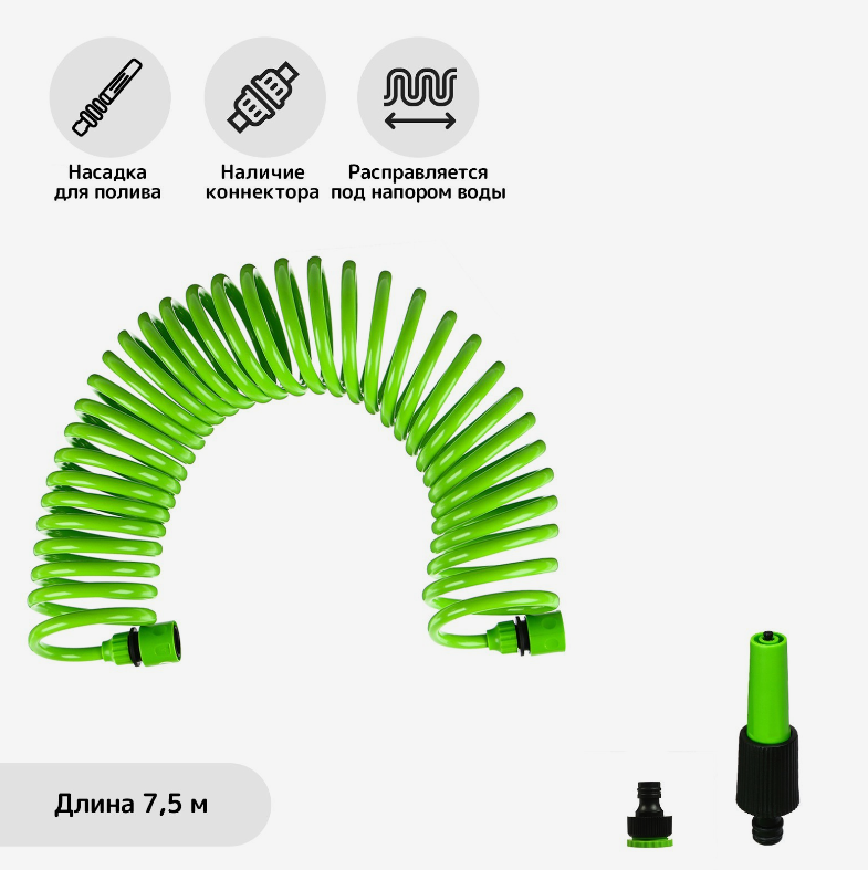 СохранитьШланг поливочный спиральный, 7,5 м, быстросъёмный, с поливочным пистолетом и штуцером, зелёный, Greengo интересное: