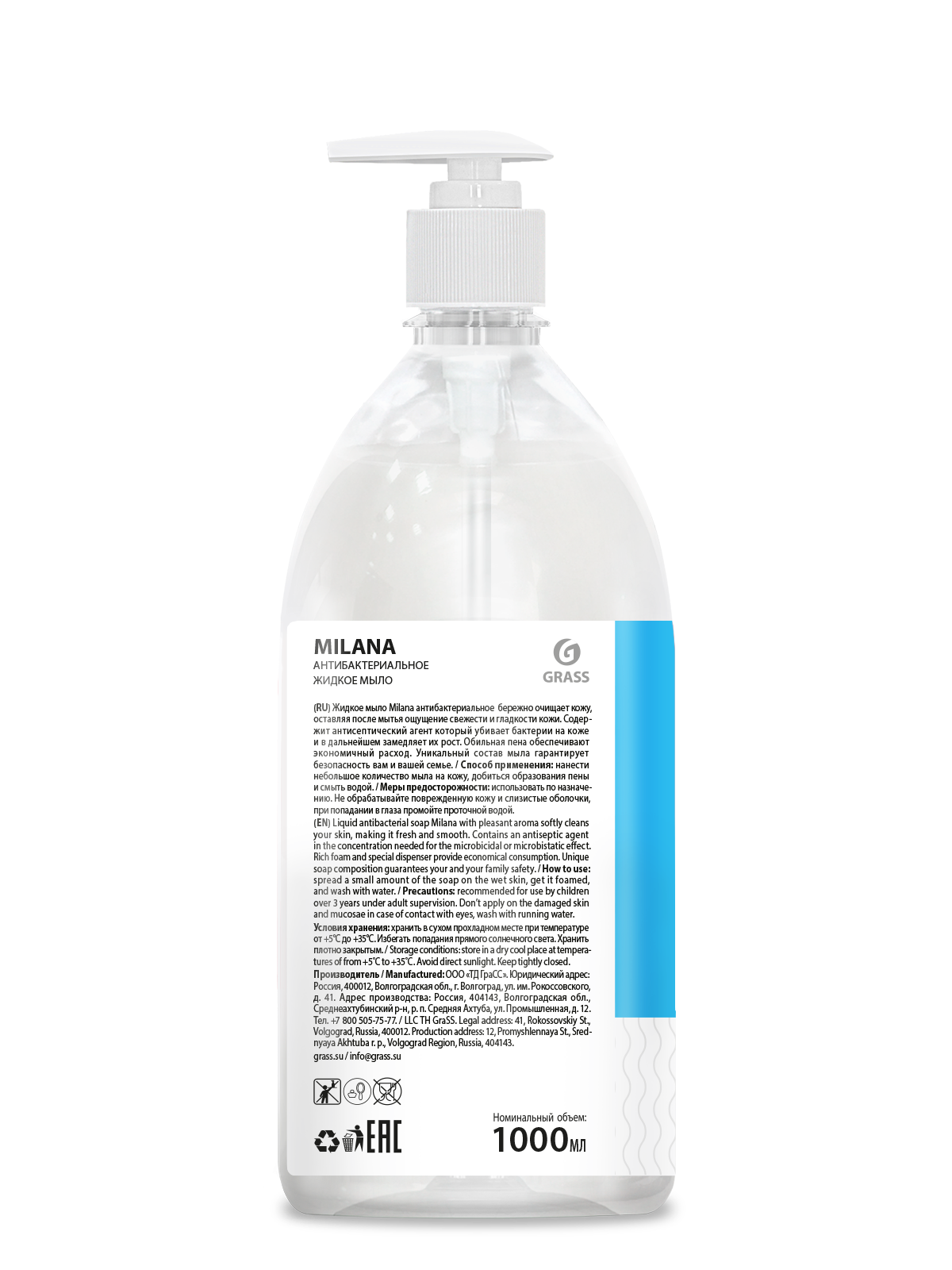 Жидкое мыло с дозатором (флакон 1000 мл) MILANA антибактериальное 125435