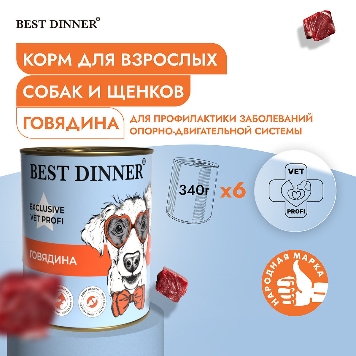 Best Dinner Exclusive Vet Profi Mobility Говядина консервы для собак - 340 г х 6 шт