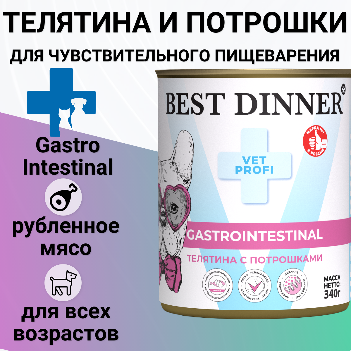 Влажный диетический корм Best Dinner Vet Profi GastroIntestinal для собак при заболевании ЖКТ Телятина с потрошками (6шт х 340гр)