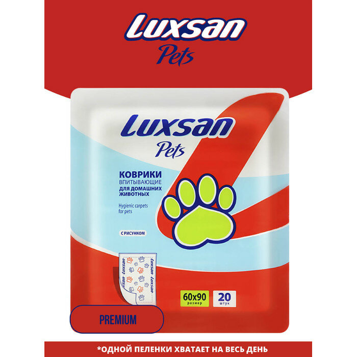 Пеленки Luxsan Premium для кошек и собак, впитывающие, с рисунком, полиэтилен, 60х60 см , 20шт.