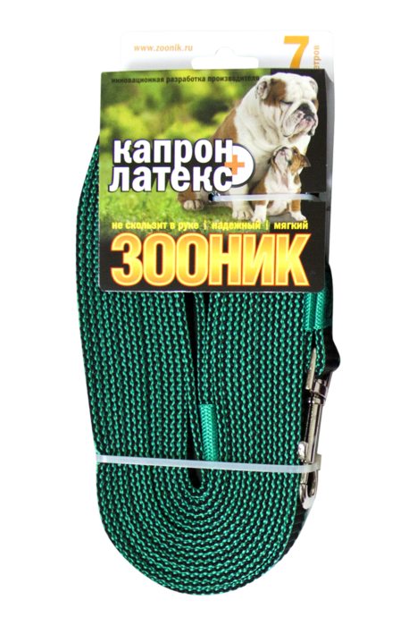 11437-1 Зооник Поводок капроновый с двойной латексной нитью 7мх 20мм, Зеленый 06