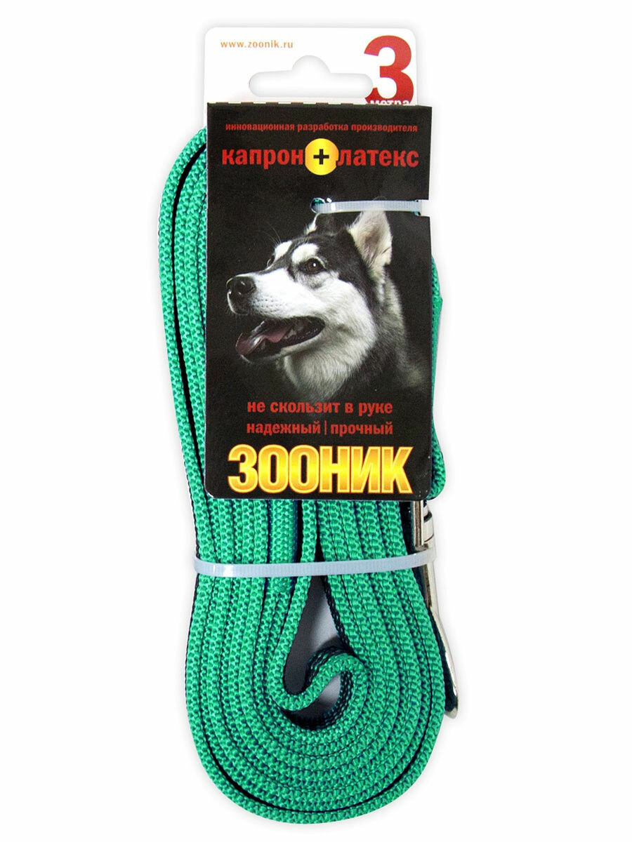 Поводок зооник капроновый с латексной нитью зеленый для собак (3 м/20 мм)