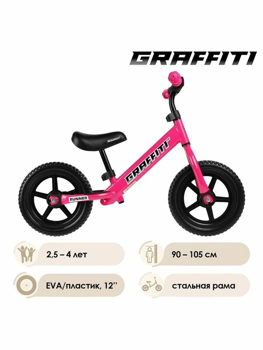 Беговел 12" GRAFFITI Runner, цвет розовый GRAFFITI 3870169 .