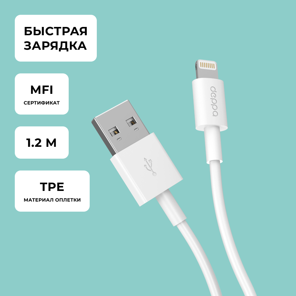 Кабель Deppa USB - Lightning 2.4A 1.2m MFI White (арт.72128)