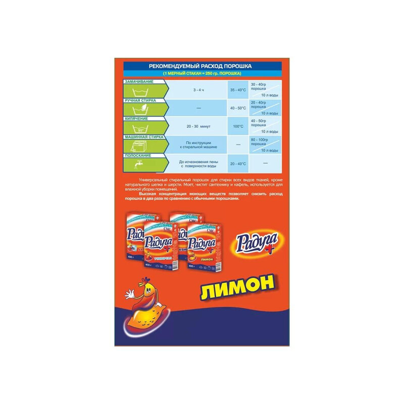 Стиральный порошок универсальный Радуга Плюс Лимон, 450г, 1шт. (603909)