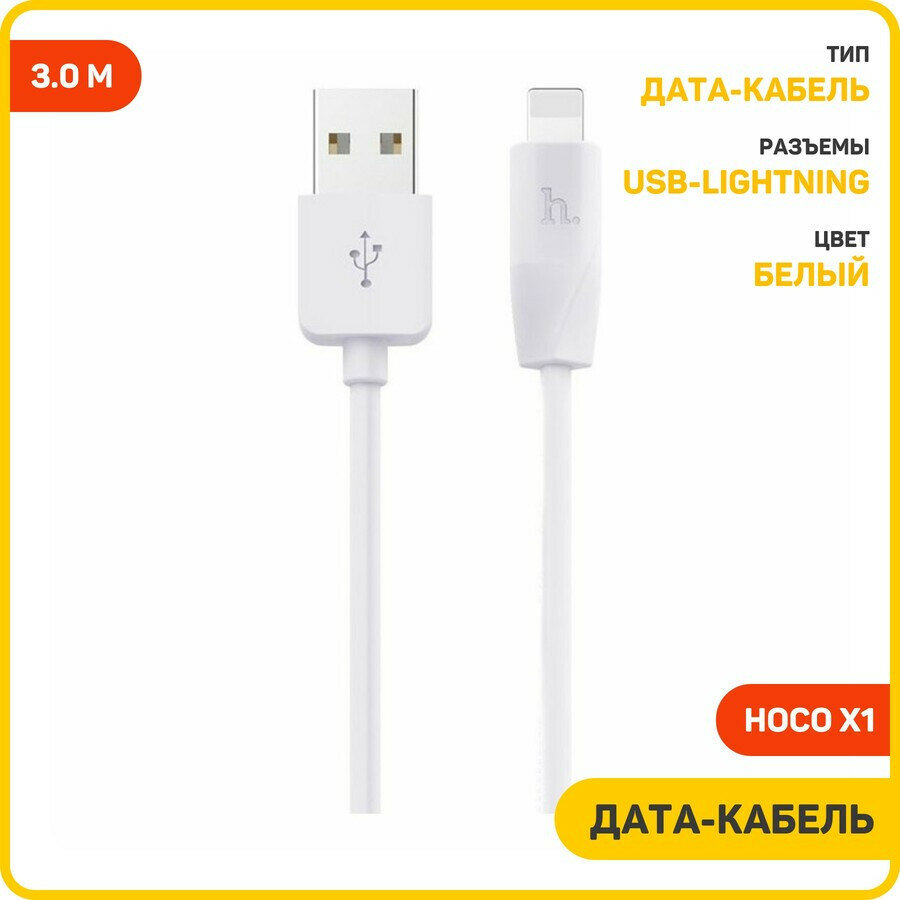 Кабель Hoco Кабель зарядный Hoco Premium Product X1 Rapid USB - Lightning , 1 м Белый, 3 м, 1 шт., белый
