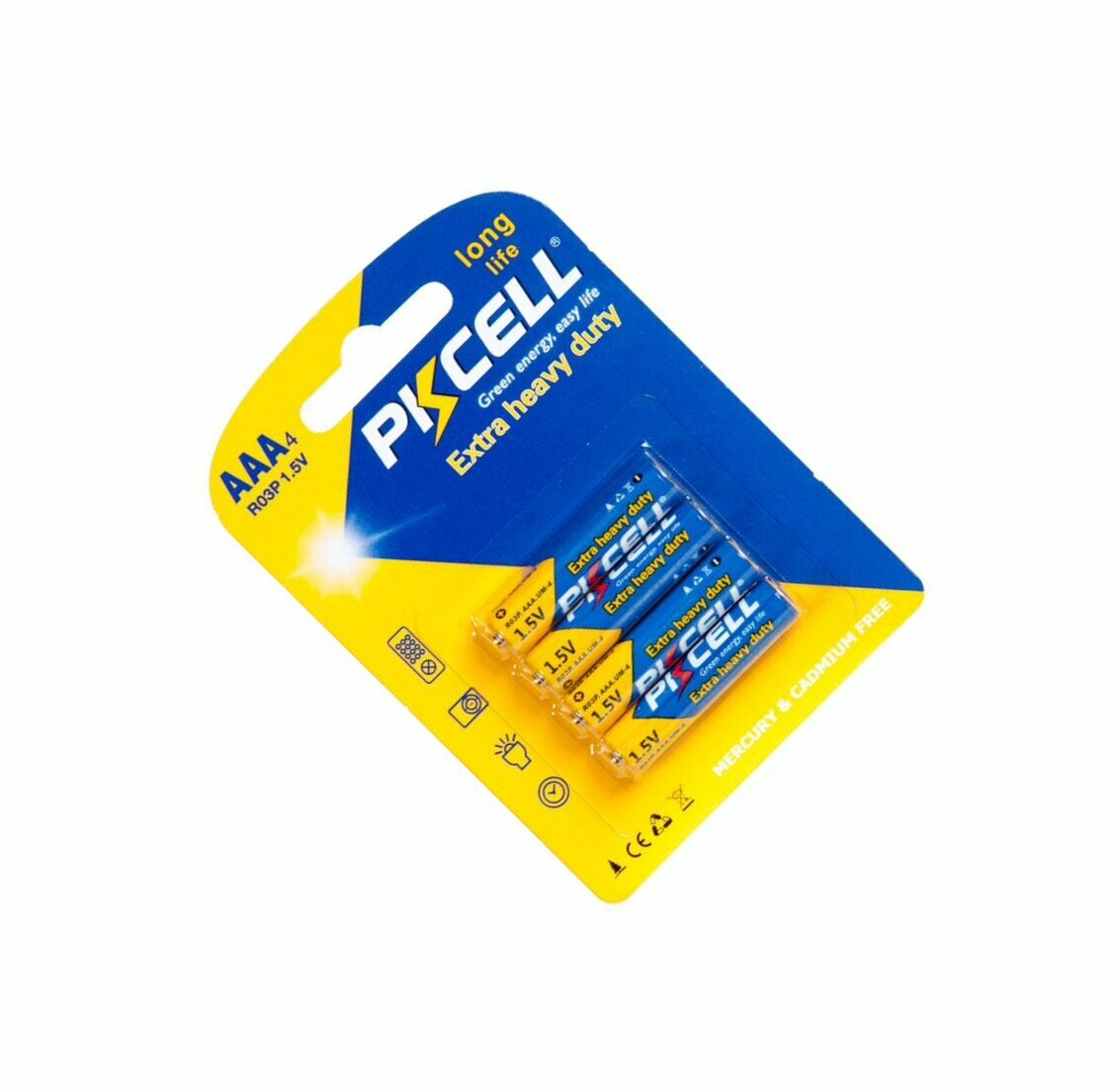 Small Battery / Батарейка (солевой элемент питания) PKCELL, 1,5 В, мезинчиковая, AАА R03P-4B , 4 шт в блистере