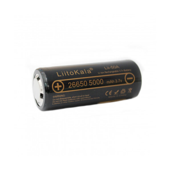 Аккумулятор Liitokala 26650 литий-ионный, емкость 5000 mA/h, 3.7V, 50A