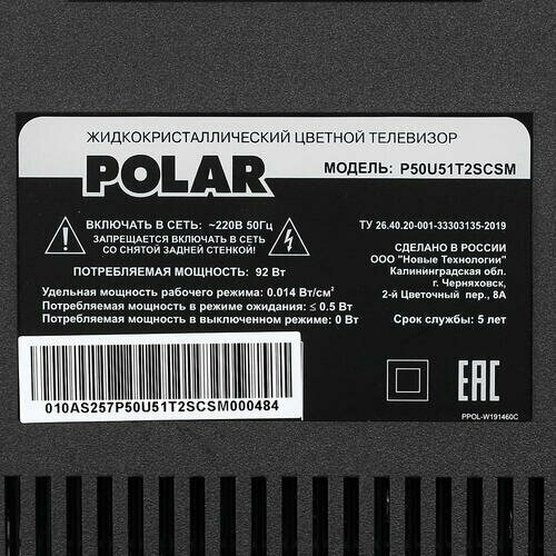 POLAR 50" Телевизор LED POLAR P50U51T2SCSM Rev. 1 P50U51T2SCSM