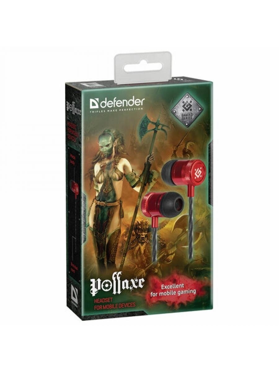 Наушники Defender Pollaxe вкладыши, с микрофоном, черно-красный
