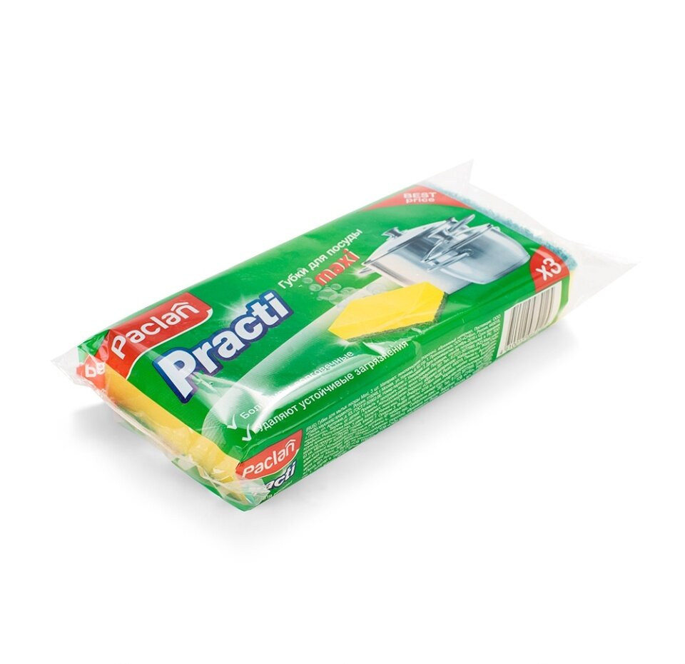 Купить Губки для мытья посуды Paclan Practi Maxi поролоновые 95x65x35 мм 3 штуки в уп 689928