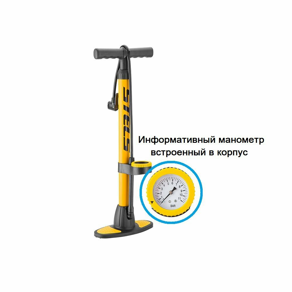 Насос для велосипеда напольный ручной STELS THP-2001A пластиковый с манометром желтый (item:020) интересное: