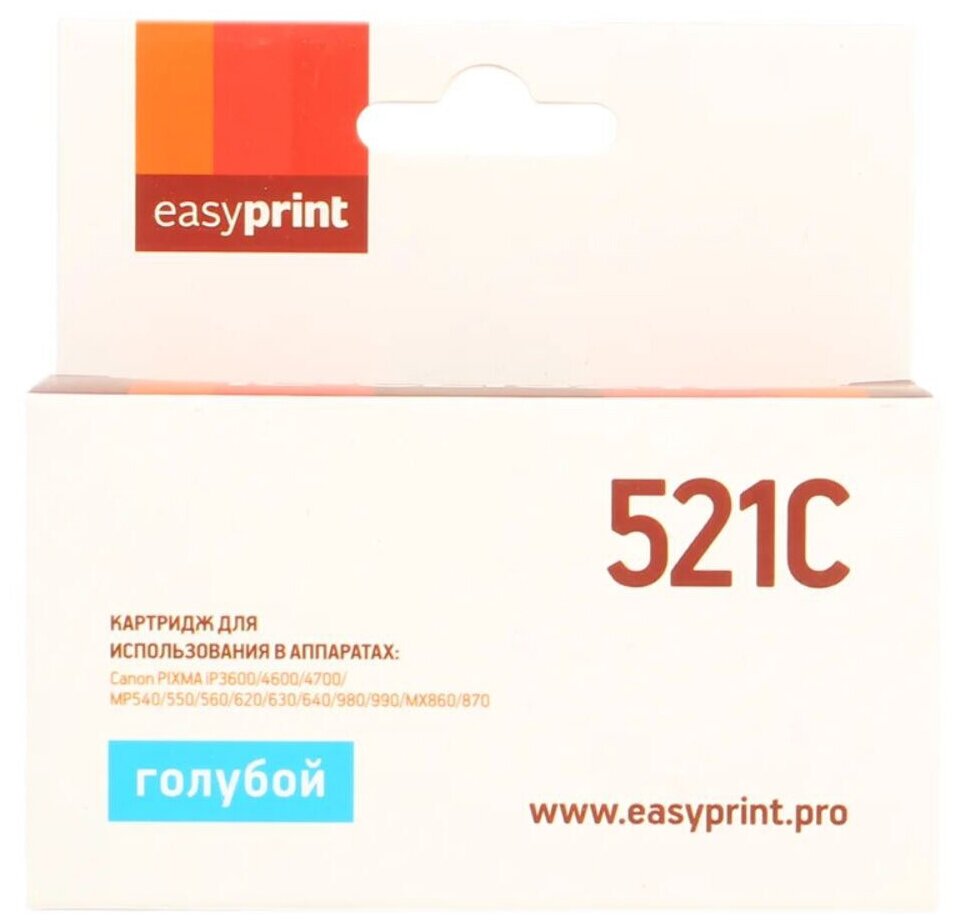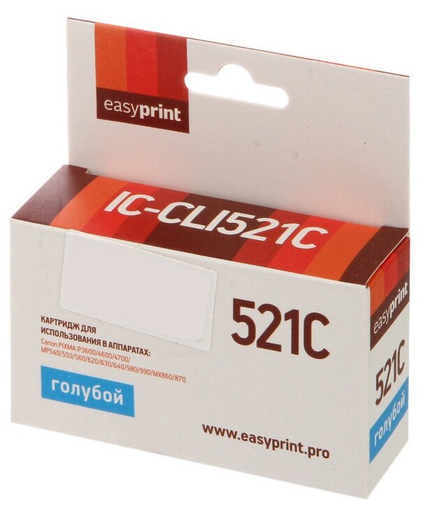 Купить Картридж EasyPrint IC-CLI521C для Canon PIXMA iP4700/MP540/620/980/MX860, голубой, с чипом