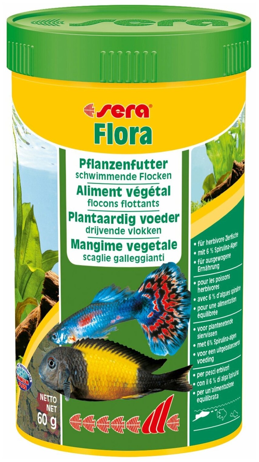 Сухой корм для рыб Sera Flora растительный в хлопьях, 250 мл, 60 г