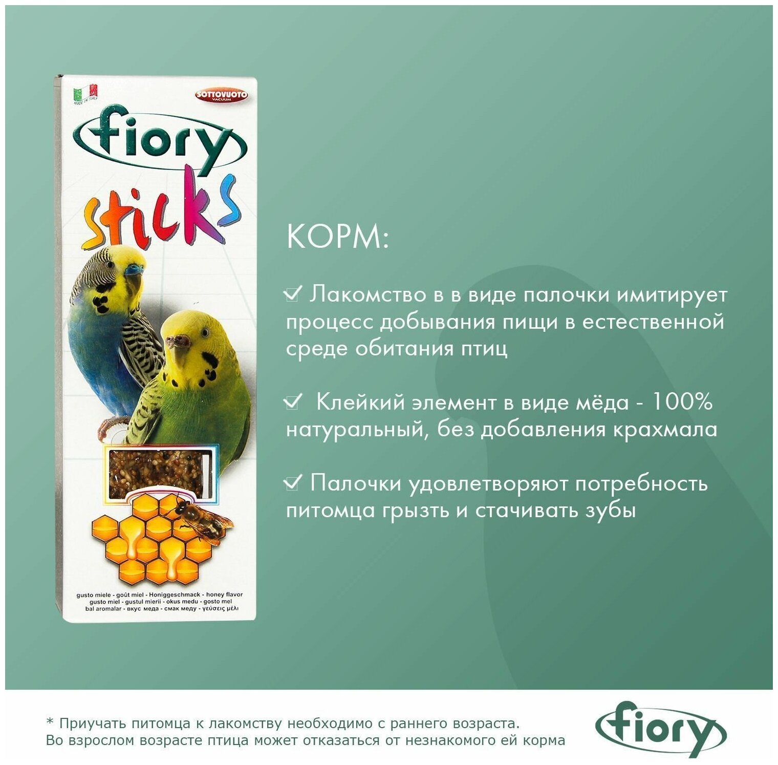 FIORY STICKS – Фиори палочки-лакомство для волнистых попугаев с медом (60 гр) интересное: