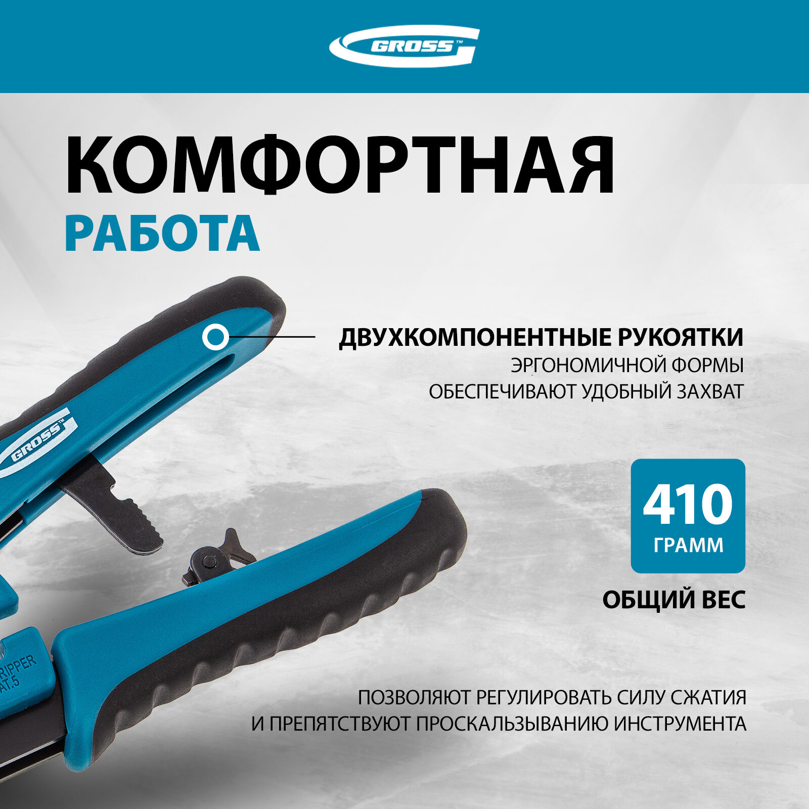 Инструмент обжимной Gross, для разъемов RJ-45/12/11, 6P/8P, рукоятка двухкомпонентная