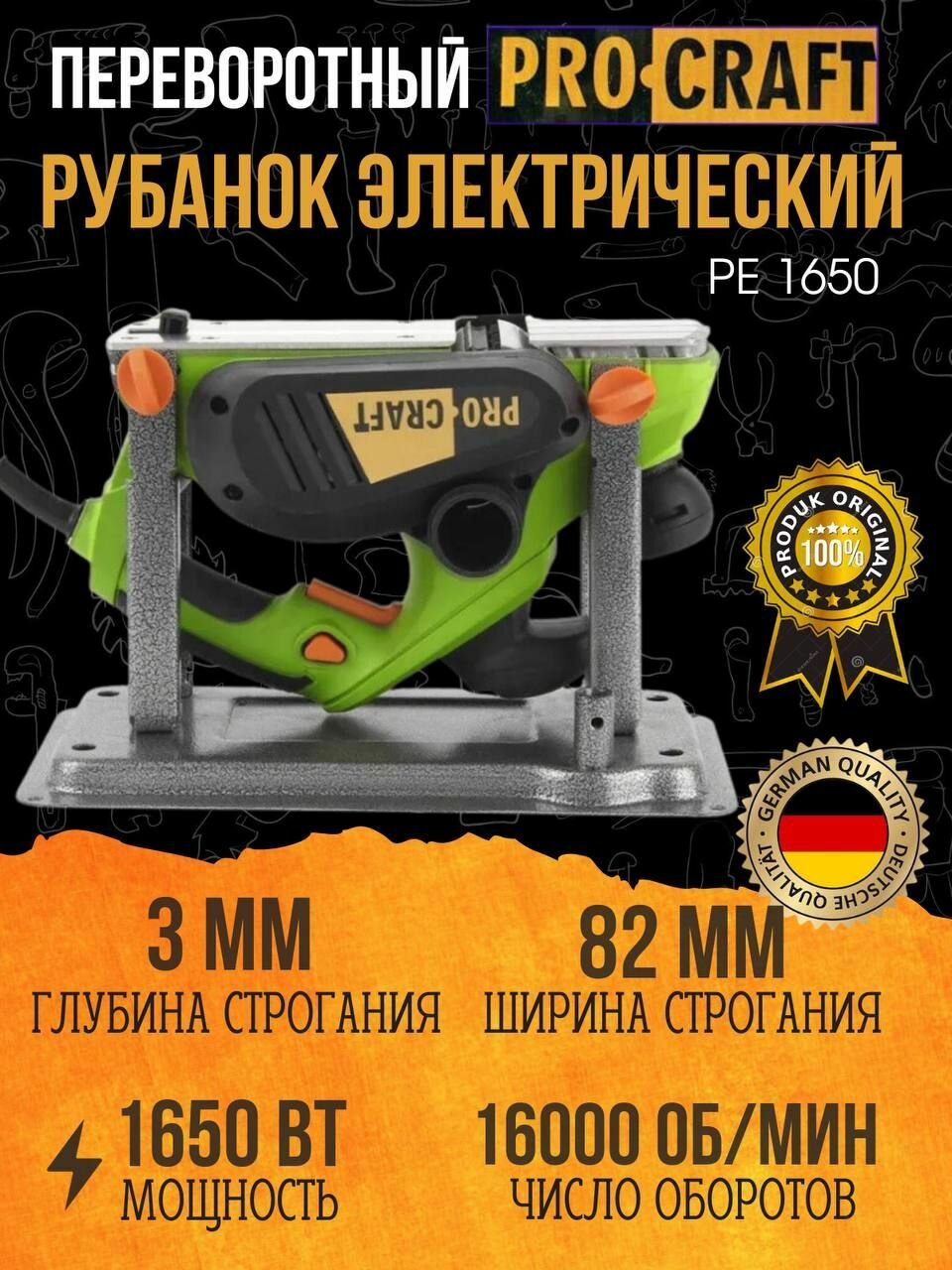 СохранитьРубанок электрический переворотный Procraft PE 1650, нож 82мм, глубина 3мм, 16000об/мин интересное: