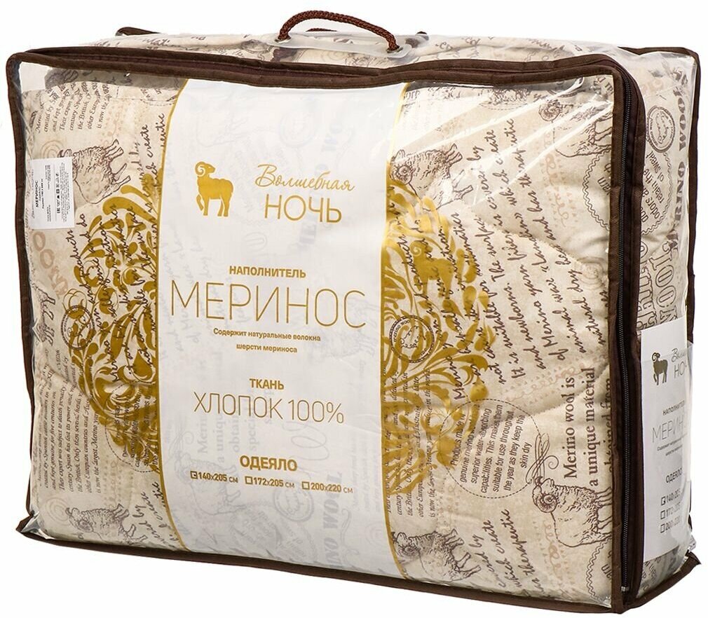 Одеяло 2-спальное, 172 х 205 см, Меринос, всесезонное, чехол 100% хлопок, кант, Волшебная ночь