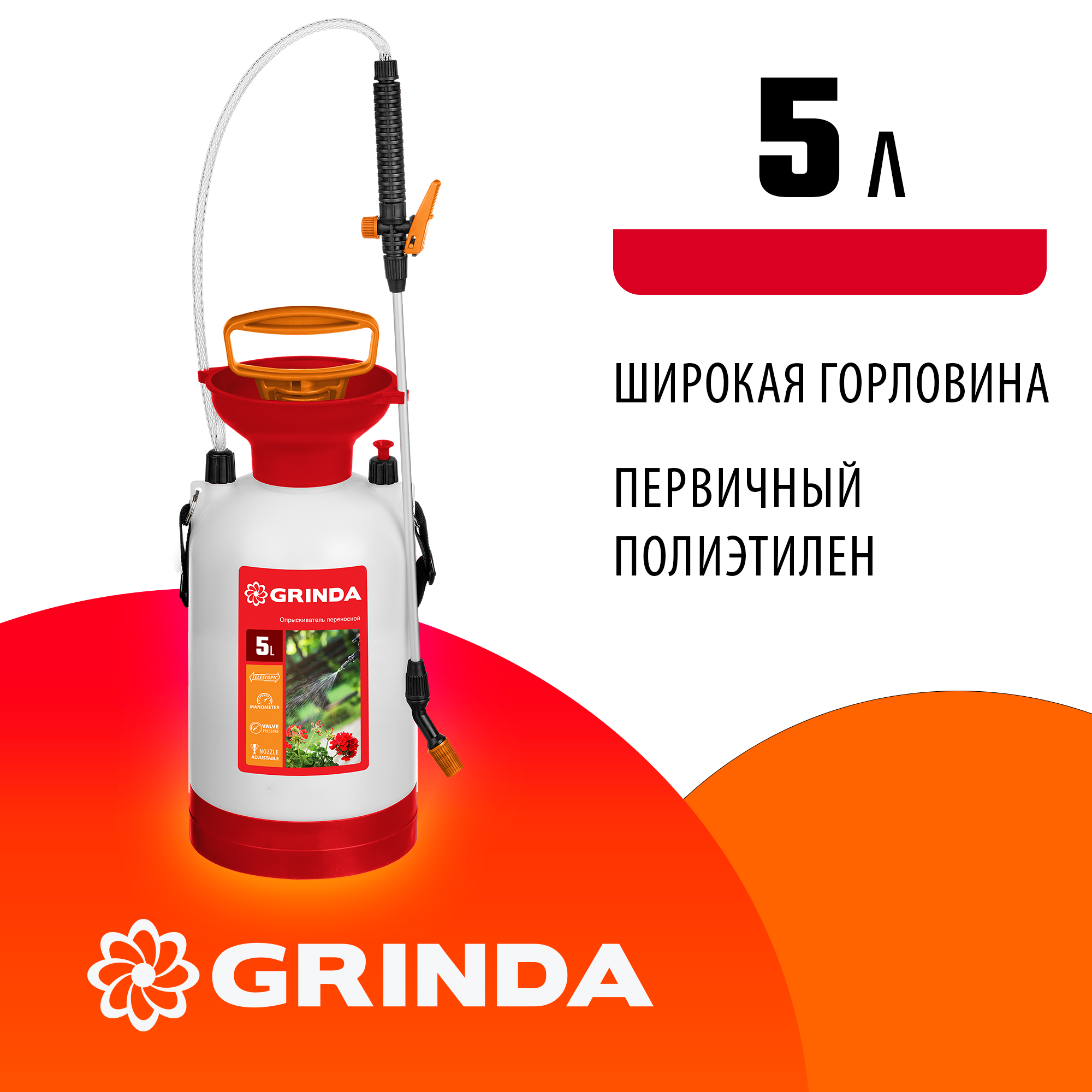 GRINDA TS-5, 5 л, с широкой горловиной и устойчивым днищем, переносной опрыскиватель (8-425115)