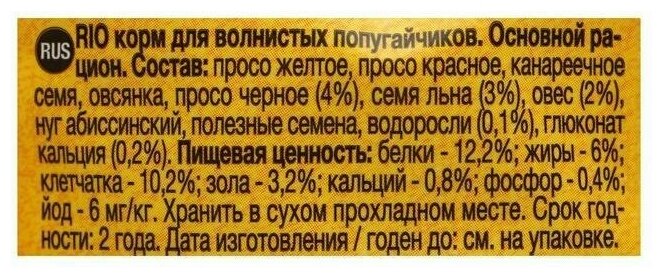 Rio корм для волнистых попугайчиков, в период линьки 500 гр (10 шт)