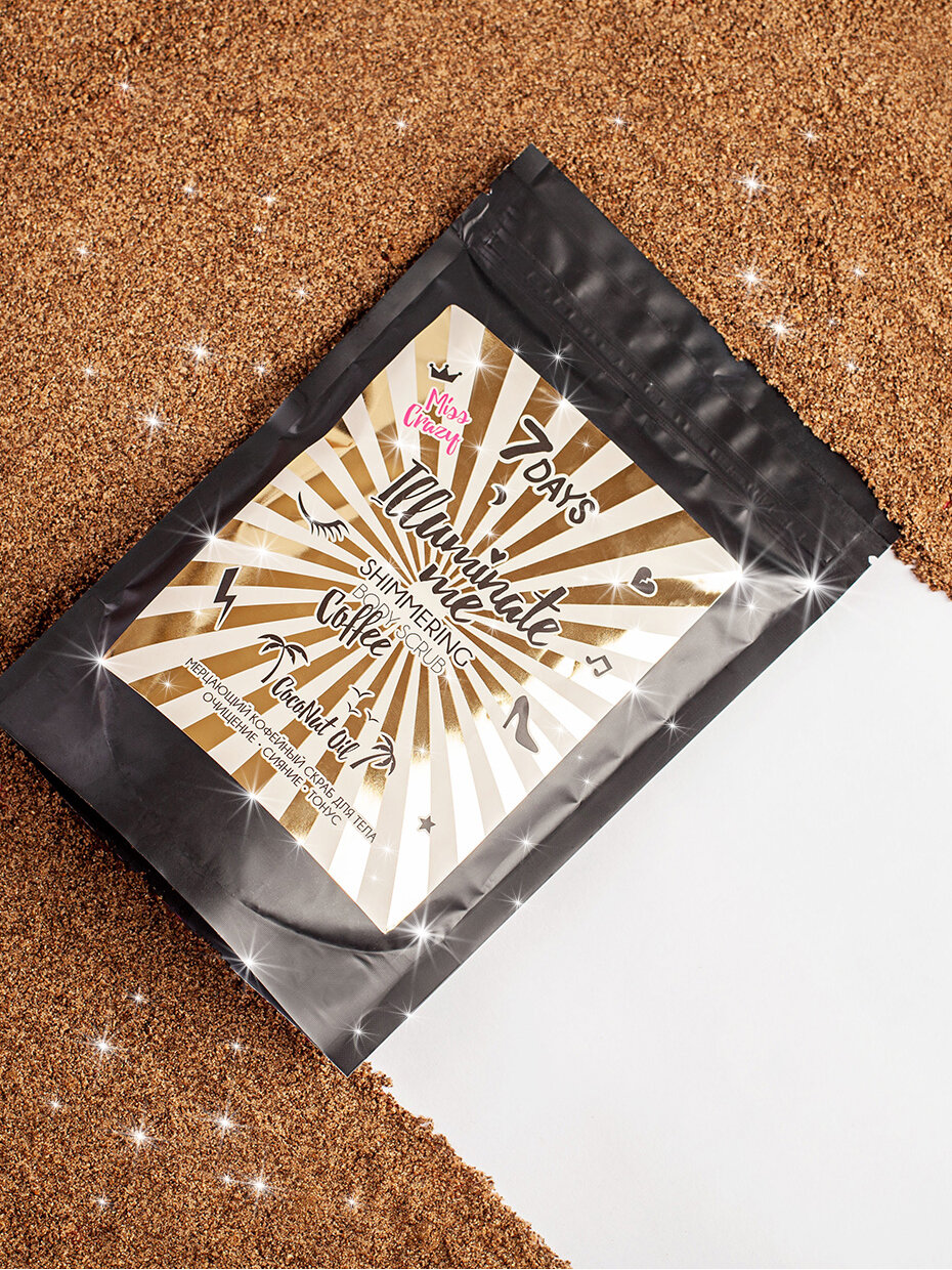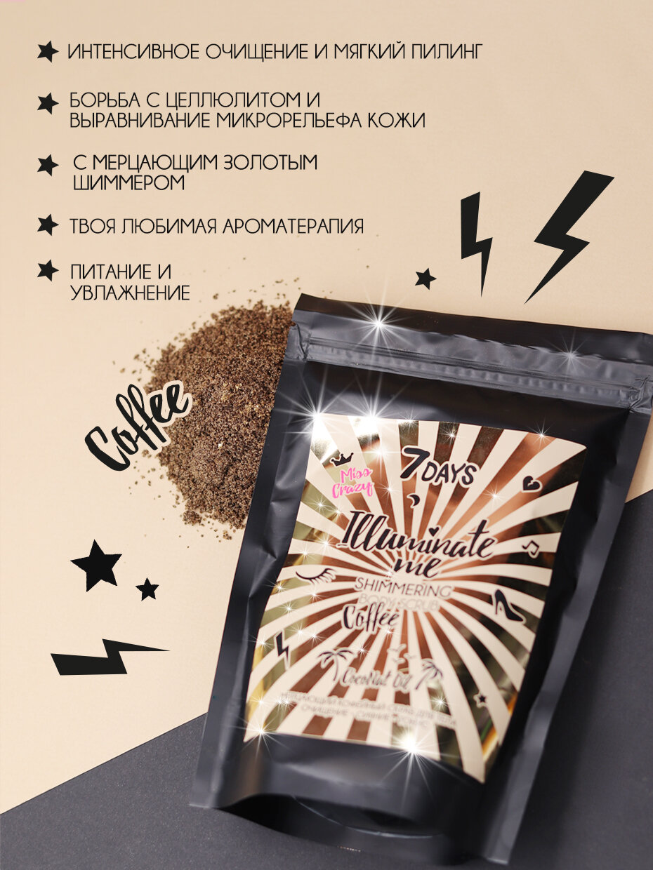 Скраб для тела, кофейный с шиммером 7DAYS ILLUMINATE ME MISS CRAZY антицеллюлитный, 200мл