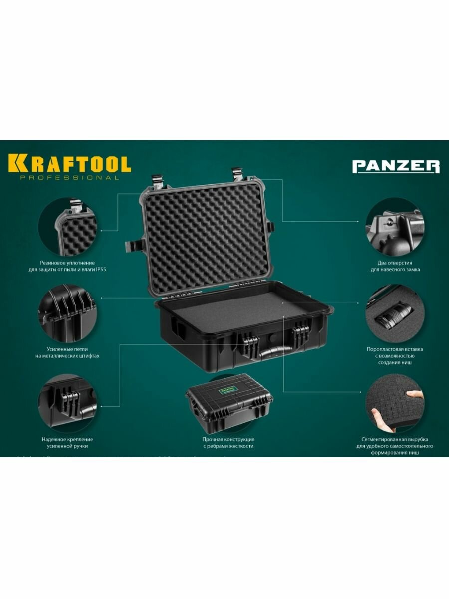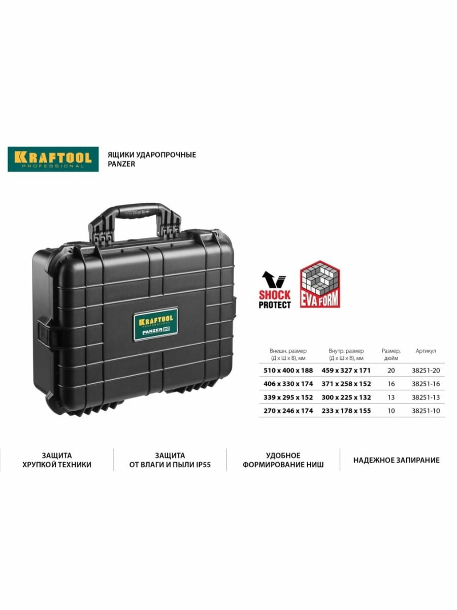 KRAFTOOL PANZER-16, 400 х 330 х 170 мм, (16″), IP55, ударопрочный пластиковый ящик (38251-16)