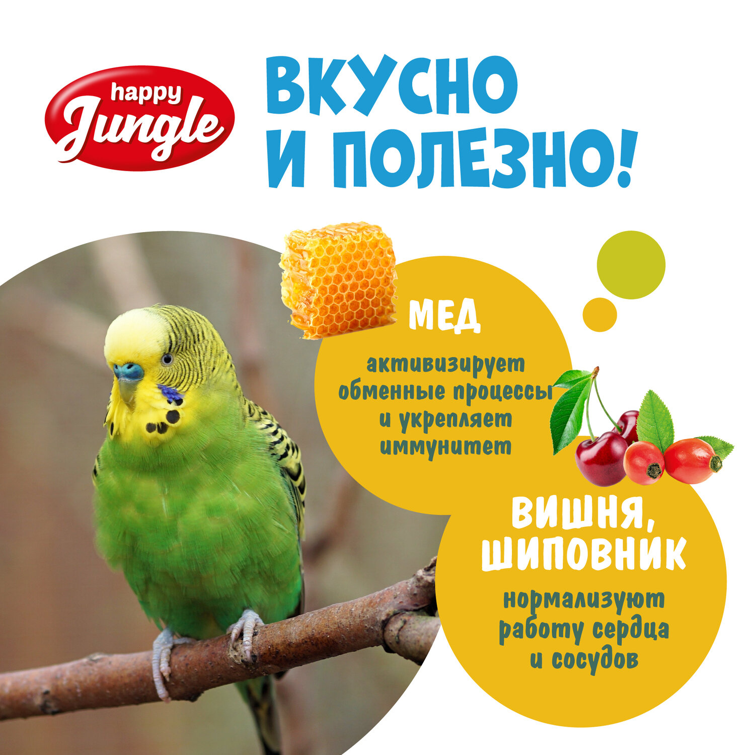 Лакомство для птиц Happy Jungle мед + ягоды , 90 г , 3 шт. в уп.