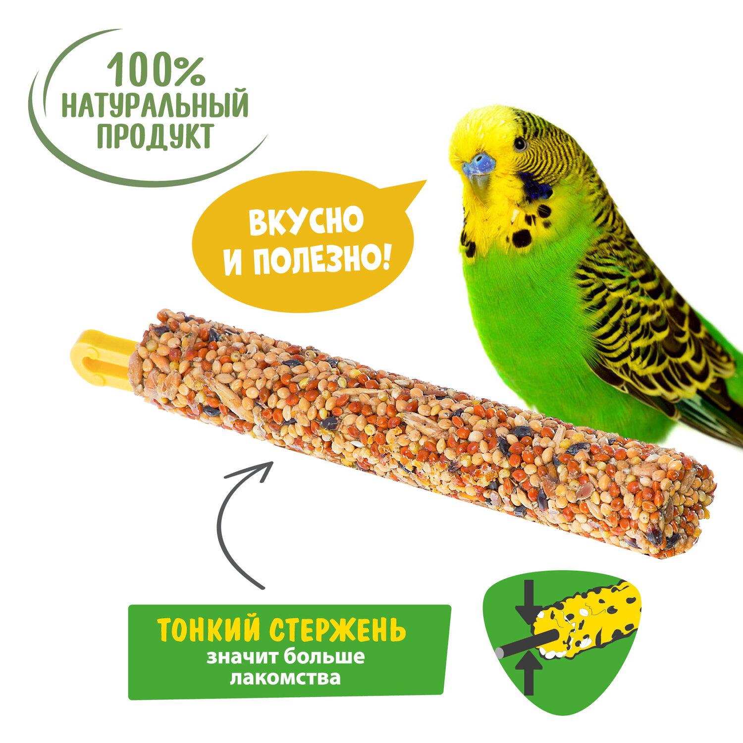 | Плюсы: | Низкая цена, палочка тонкая - больше корма на ней |