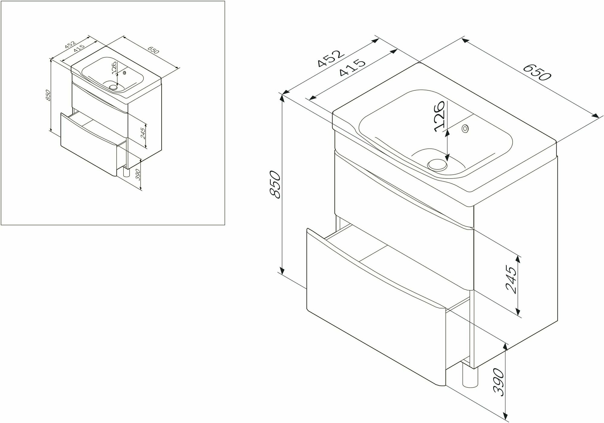 Тумба под раковину Am.Pm Like 65, 2 ящика