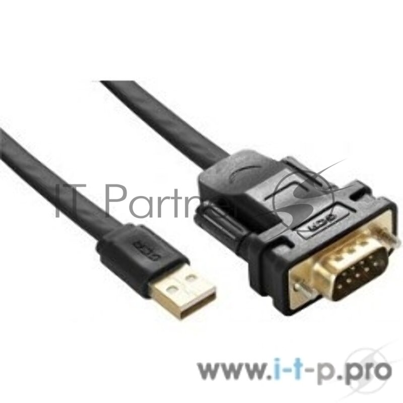 Конвертер-переходник Greenconnect 2.0m плоский, черный, 28/26 Awg, USB 2.0 AM / DB9 RS-232 Prof GCR-