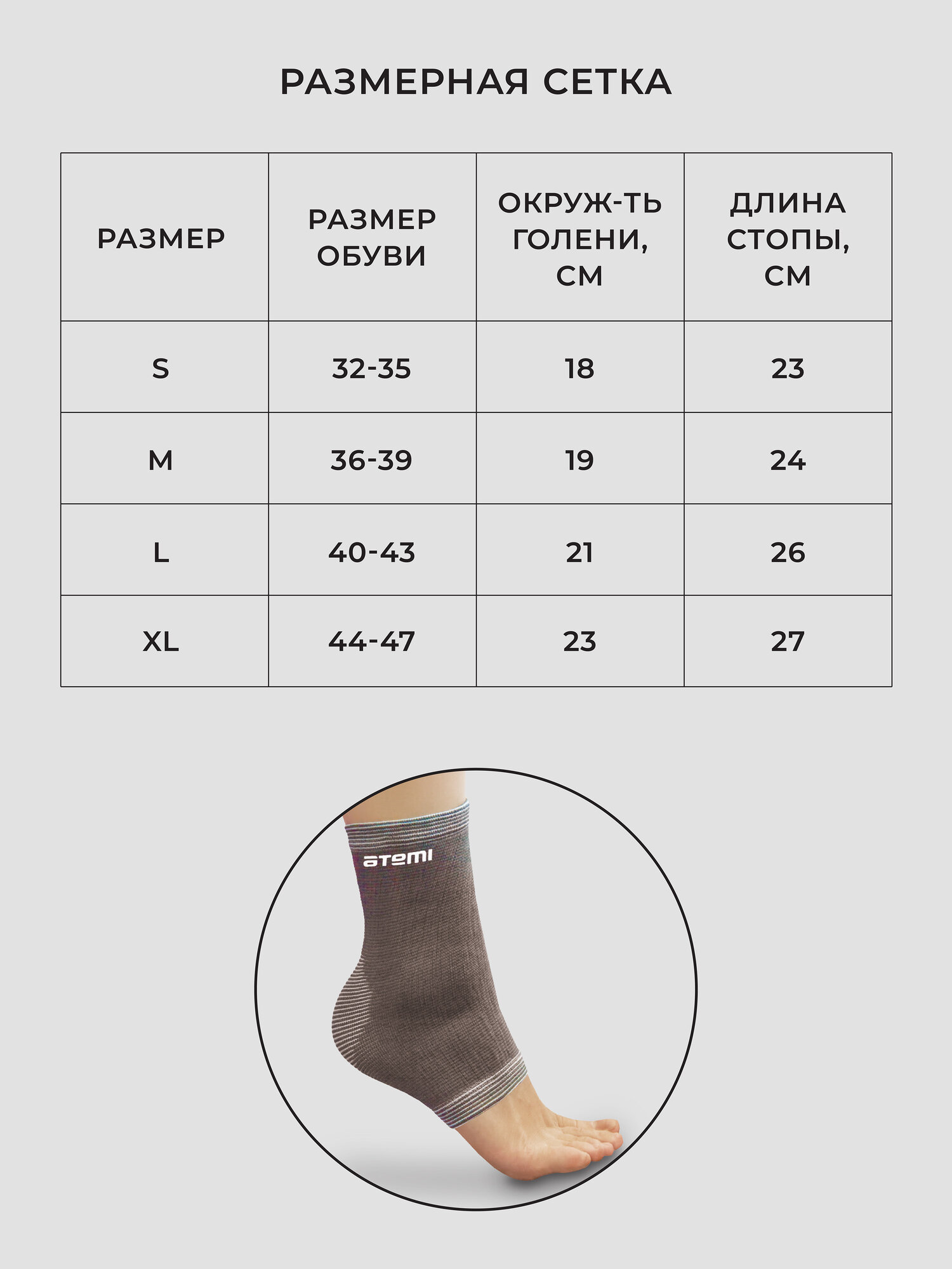 Суппорт голеностопа Atemi, эластичный, полиэстер размер S
